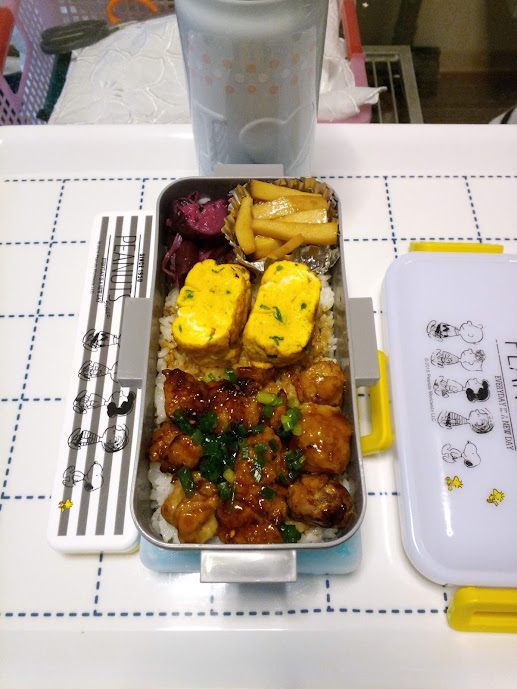 2021-10-06 パパが作る娘弁当 おっさんの家庭料理 今日のお弁当は ●焼き鳥丼 ●玉子焼き(ネギ入り) ●エリンギポン酢 ●しば漬け 朝、お弁当を作っていると同じく朝食の用意をする娘が、よくたわいもない事を話しかけてきます 今朝は「今度遠足に行けるようになって本当に嬉しい友達も喜んでいる」という話 子供のころ遠足が無くなるのは大雨の日ぐらいで、当日までワクワクしていたのを思い出しました 神様! コロナ禍で最近のイベントは行われずずっと我慢してきた子供たちの為にも 当日は「晴天で!」 どうぞ宜しくお願い致します_(._.)_